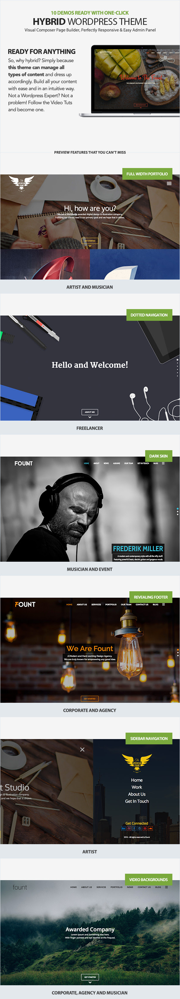 - It is really important to have a simple and powerful admin panel. Divided in 10 sections the Fount Options Panel will allow to fully edit the content and decide on how will some sections be displayed;